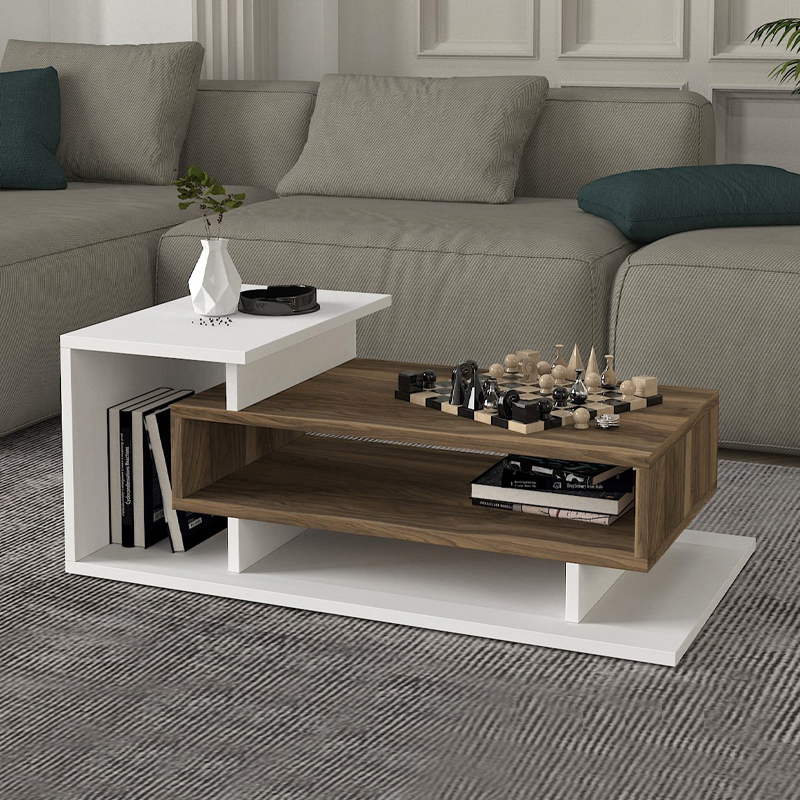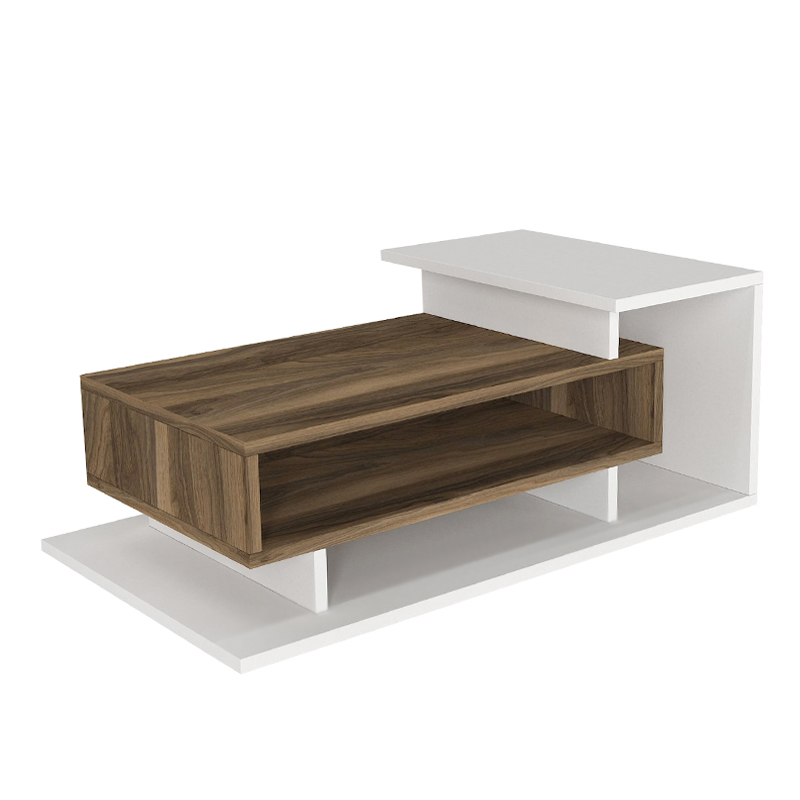 Τραπεζάκι σαλονιού Flynn Megapap από μελαμίνη χρώμα λευκό – καρυδί 90x50x35εκ.