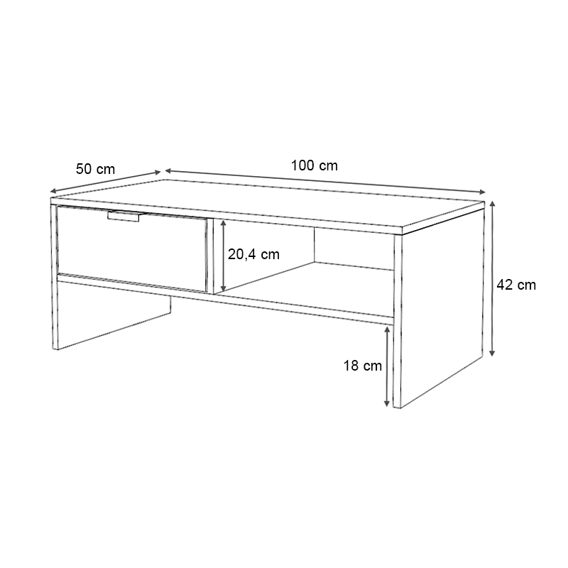 • Διαστάσεις: Μήκος 100 x Βάθος 50 x Ύψος 42 εκ.
