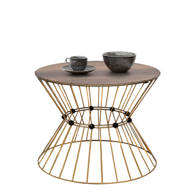 Τραπεζάκι σαλονιού Girene Megapap μεταλλικό – Mdf χρώμα χρυσό – καρυδί Ø55×42εκ.