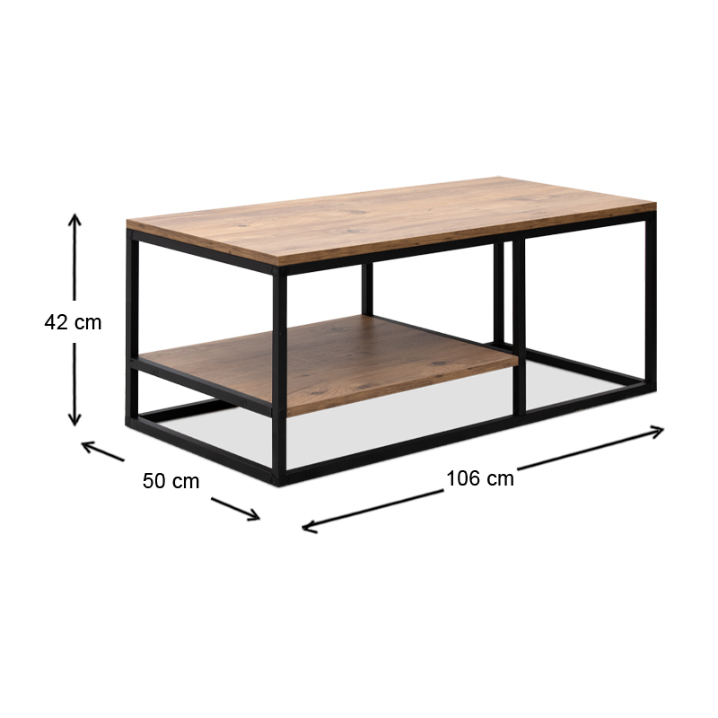 Τραπεζάκι σαλονιού Kane Megapap μεταλλικό – μελαμίνης χρώμα pine oak 106x50x42εκ.