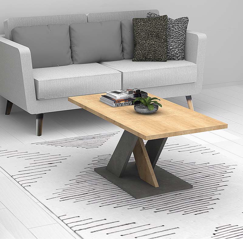 Τραπεζάκι σαλονιού Marcello Megapap μελαμίνης χρώμα sonoma – γκρι σκυροδέματος 110x55x48εκ.