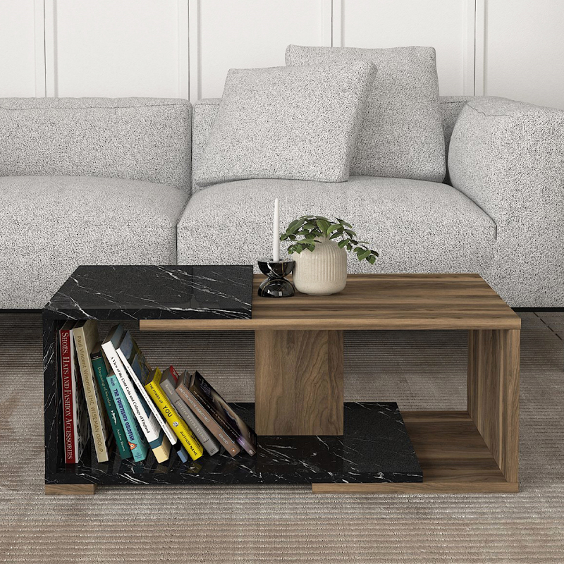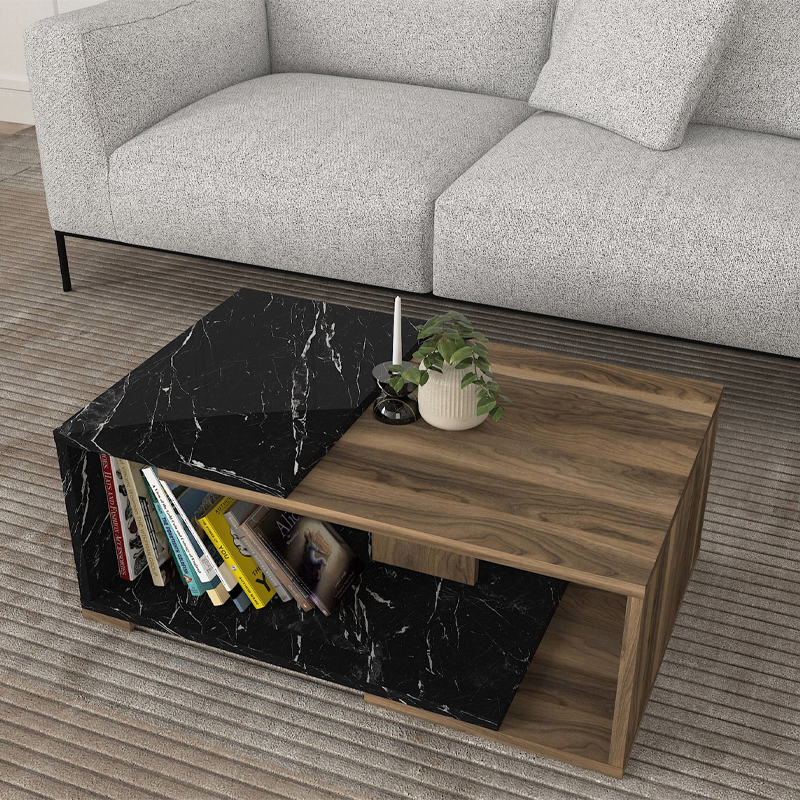 Τραπεζάκι σαλονιού Mareta Megapap χρώμα μαύρο εφέ μαρμάρου – καρυδί 81,8x50x35εκ.