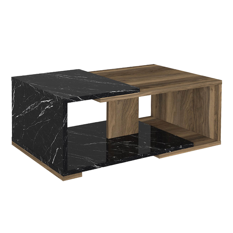Τραπεζάκι σαλονιού Mareta Megapap χρώμα μαύρο εφέ μαρμάρου – καρυδί 81,8x50x35εκ.