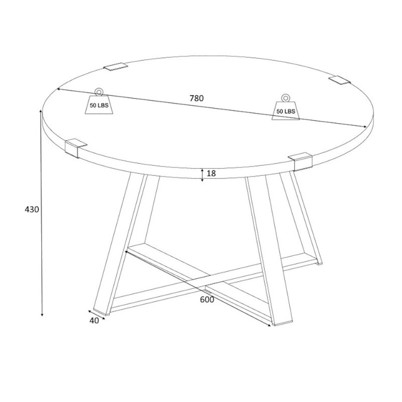 - Διαστάσεις: Μήκος 78 x Βάθος 78 x Ύψος 43 εκ.