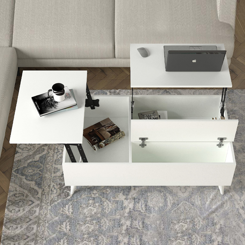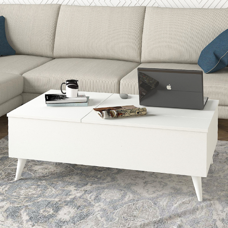 Το τραπεζάκι σαλονιού Roy διαθέτει μηχανισμό που επιτρέπει να σηκωθεί η επιφάνεια του σε θέση σερβιρίσματος για το φαγητό ή το laptop, δημιουργώντας χώρο για την αποθήκευση αντικειμένων στο εσωτερικό του.