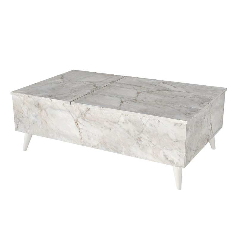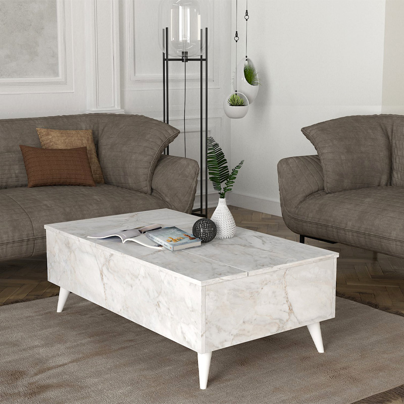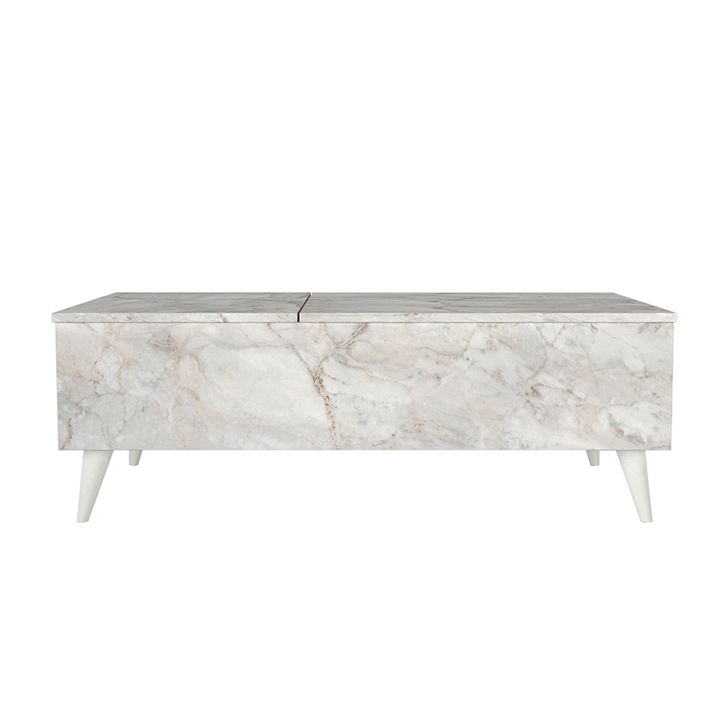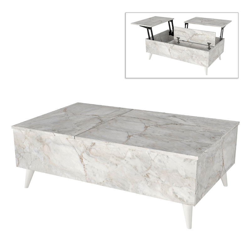 Τραπεζάκι σαλονιού Roy Megapap με σερβιτόρο χρώμα λευκό εφέ μαρμάρου 121x69x40εκ.