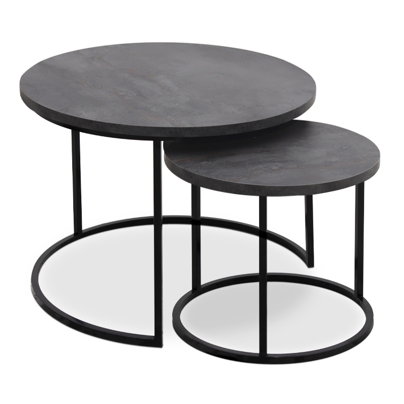 Τραπεζάκι σαλονιού σετ 2 τμχ Gary Megapap Mdf – μεταλλικό χρώμα σκούρο γκρι σκυροδέματος 65x65x44εκ.