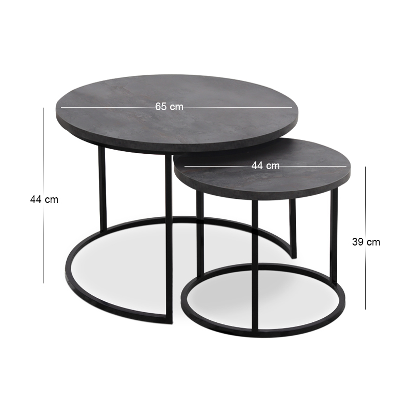 • Το σετ περιλαμβάνει δύο στρογγυλά τραπεζάκια, ένα μικρότερο κι ένα μεγαλύτερο.
