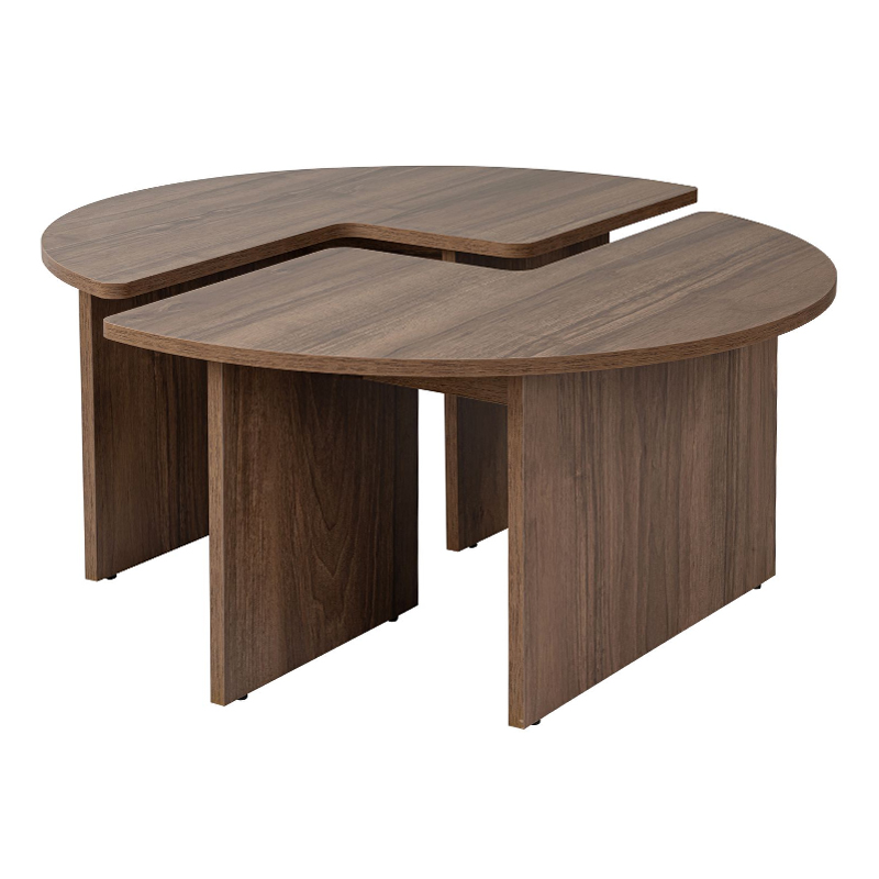 Τραπεζάκι σαλονιού σετ 2 τμχ Moira Megapap χρώμα καρυδί Ø90×41εκ.