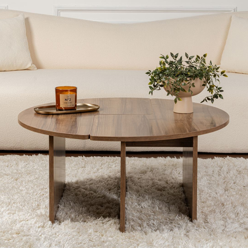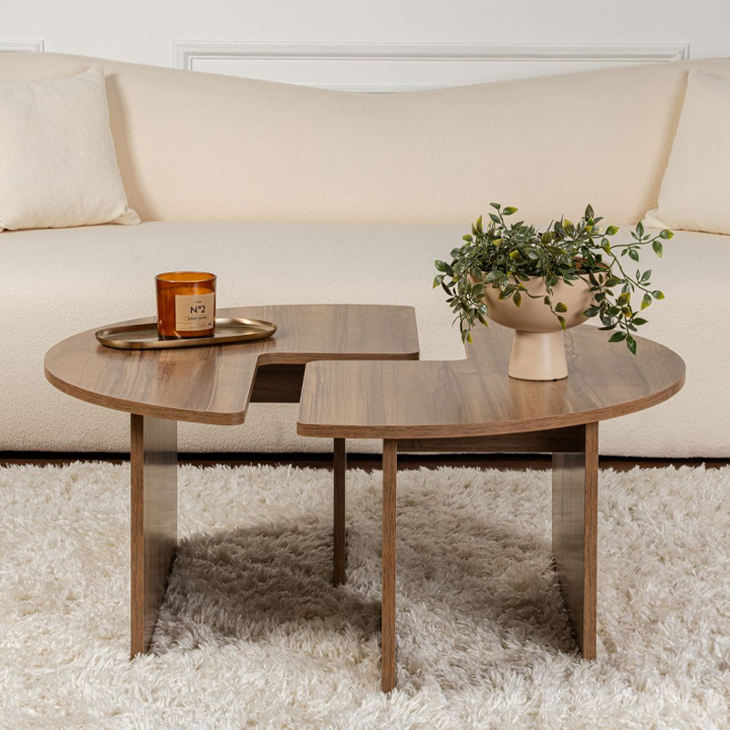 Τραπεζάκι σαλονιού σετ 2 τμχ Moira Megapap χρώμα καρυδί Ø90×41εκ.