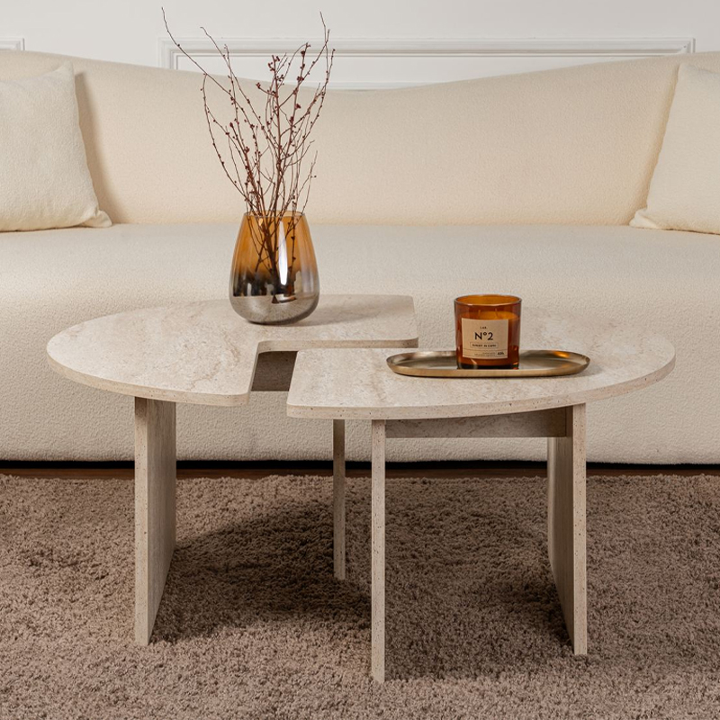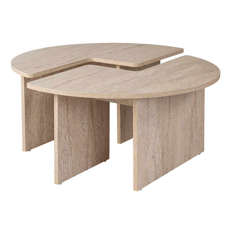 Τραπεζάκι σαλονιού σετ 2 τμχ Moira Megapap χρώμα travertine Ø90×41εκ.
