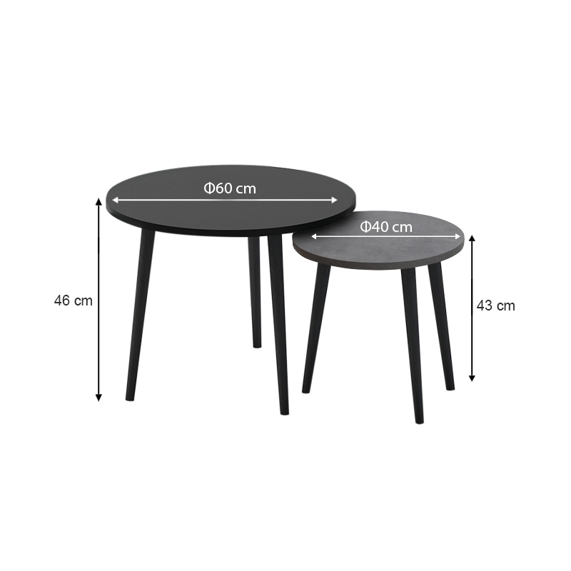 Τραπεζάκι σαλονιού σετ 2 τμχ Roma Megapap χρώμα μαύρο – γκρι ρετρό 60x60x46εκ.