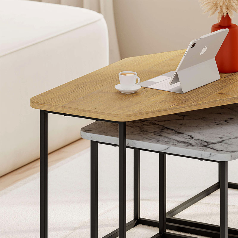 Σετ τραπεζάκια σαλονιού Nesty Megapap 3 τμχ από μελαμίνη χρώμα saphhire oak – γκρι ρετρό – λευκό εφέ μαρμάρου 110x60x48εκ.