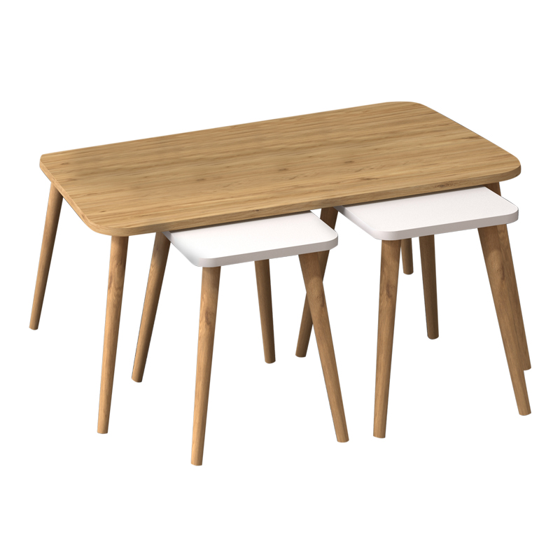 Τραπεζάκι σαλονιού σετ 3 τμχ Oliva Megapap χρώμα oak – λευκό