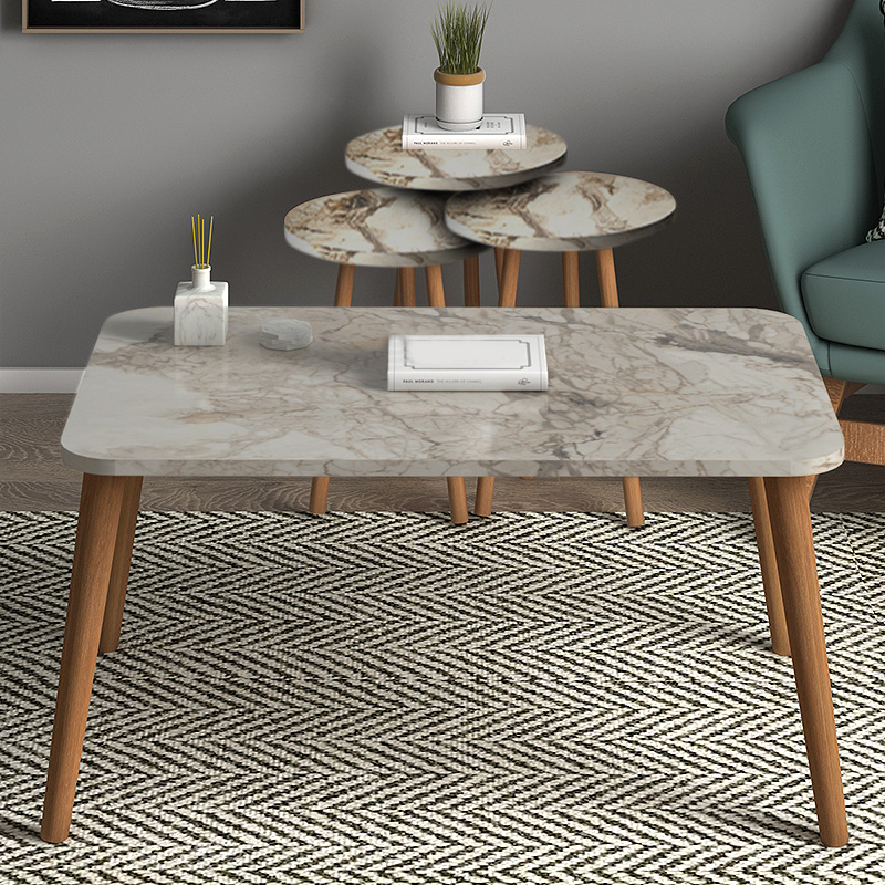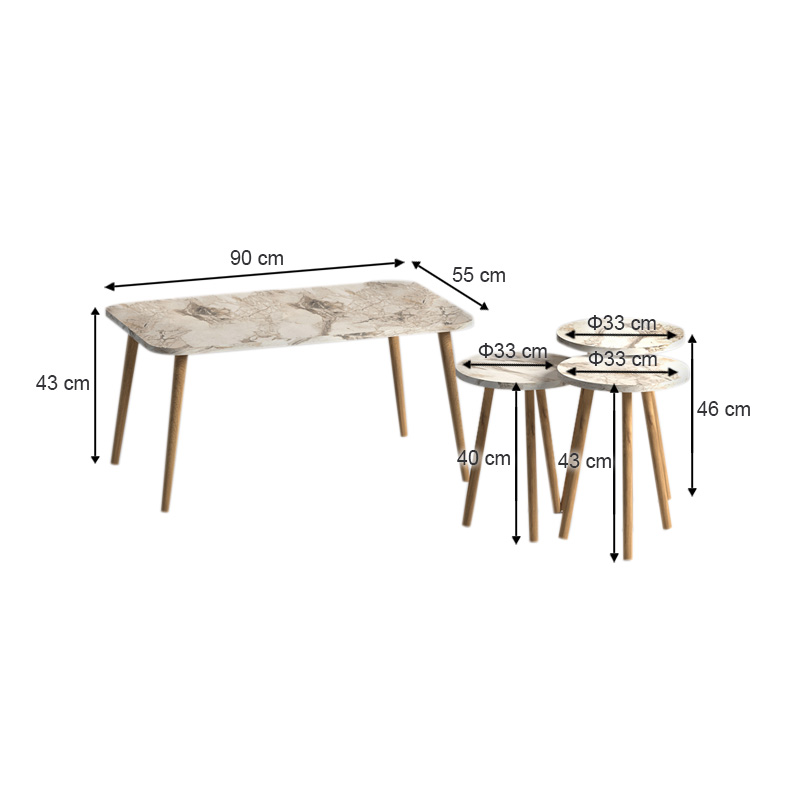 Τραπεζάκι σαλονιού σετ 4 τμχ Soul Megapap χρώμα μπεζ εφέ μαρμάρου 90x55x43εκ.
