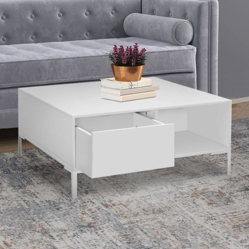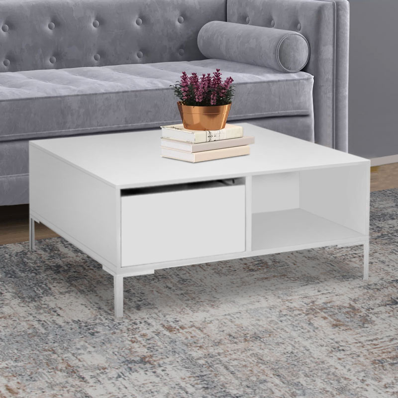 Τραπεζάκι σαλονιού Slide Megapap από μελαμίνη χρώμα λευκό 90x90x42εκ.