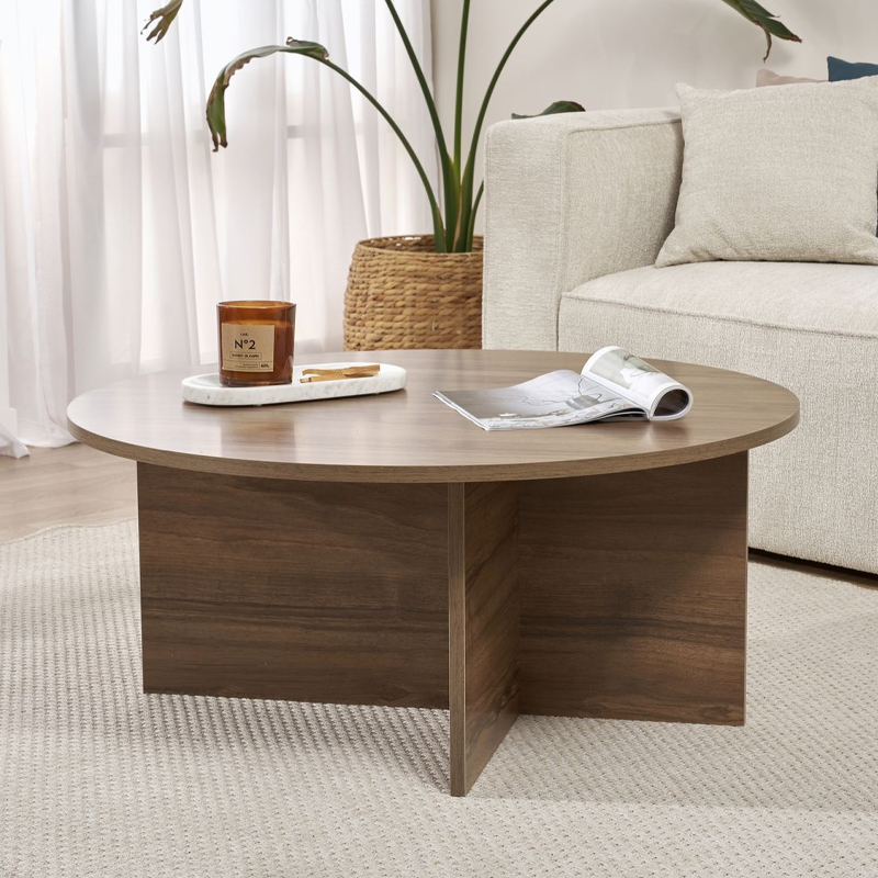 Τραπεζάκι σαλονιού Soleil Megapap χρώμα καρυδί Ø90×40εκ.