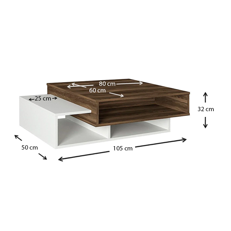 Τραπεζάκι σαλονιού Tab Megapap από μελαμίνη χρώμα λευκό – καρυδί 105x60x32εκ.