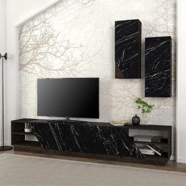 Έπιπλο τηλεόρασης επιτοίχιο Damla Megapap από μελαμίνη με LED χρώμα μαύρο εφέ μαρμάρου 180×29,5×29,5εκ.