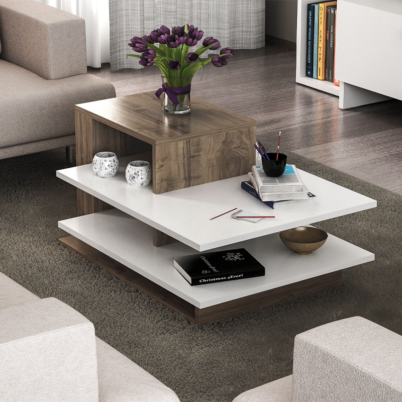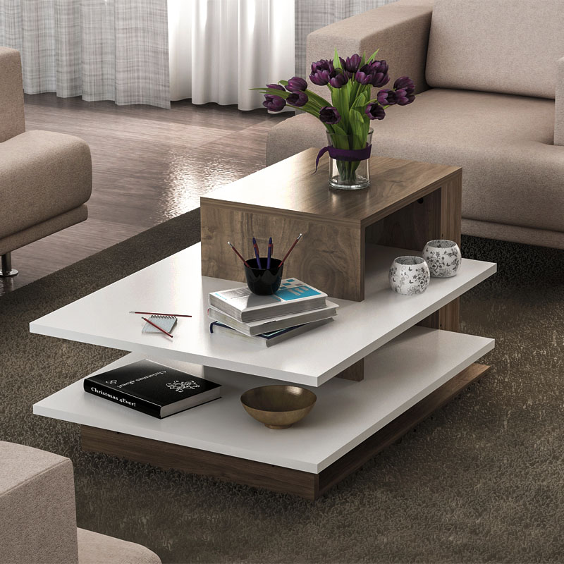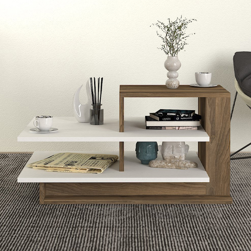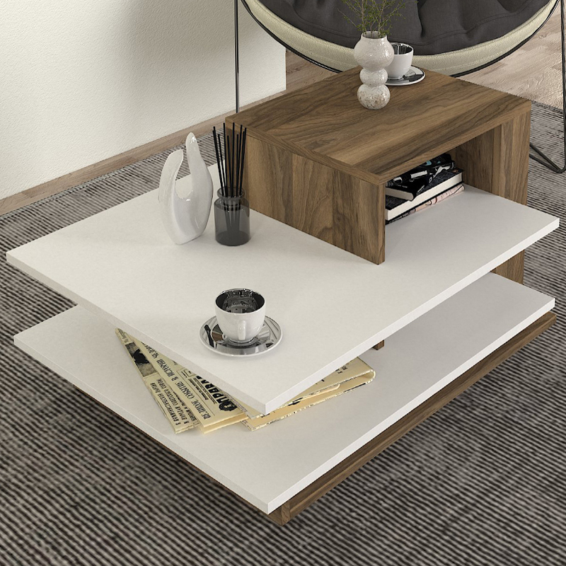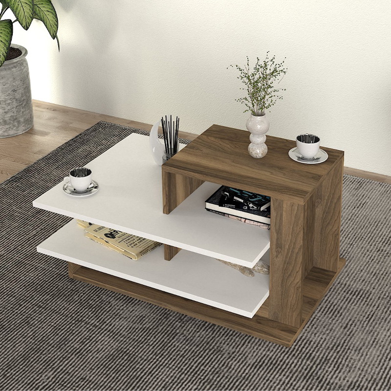 Τραπεζάκι σαλονιού Venus Megapap από μελαμίνη χρώμα λευκό – καρυδί 85x60x43,6εκ.