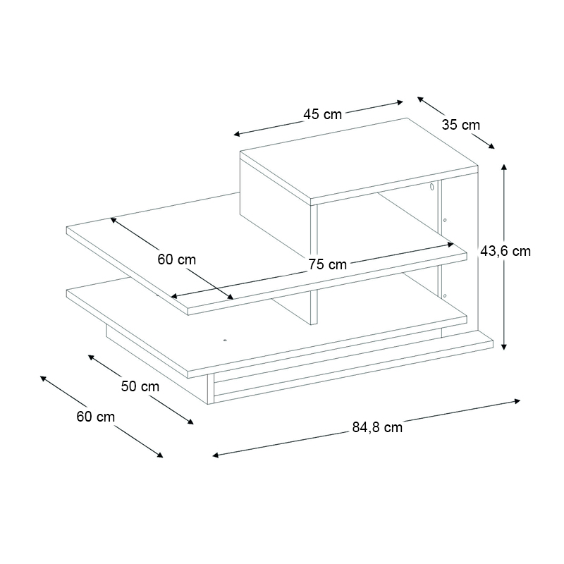 - Διαστάσεις: Μήκος 85 x Βάθος 60 x Ύψος 43,6 εκ.