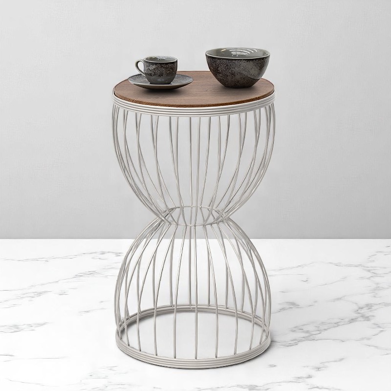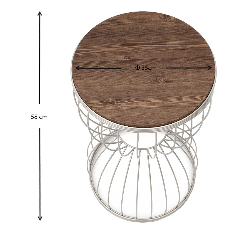 Τραπεζάκι βοηθητικό Pino Megapap μεταλλικό – Mdf χρώμα λευκό – καρυδί 35x35x58εκ.