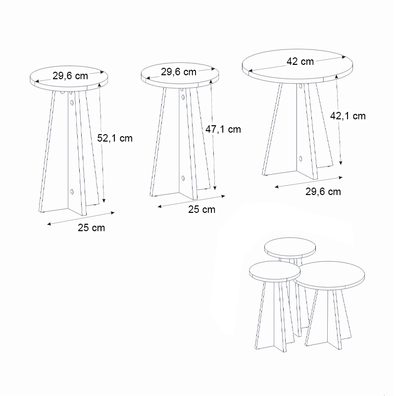 • Διαστάσεις μεσαίου τραπεζιού: Μήκος 29,6 x Βάθος 29,6 x Ύψος 47,1 εκ.