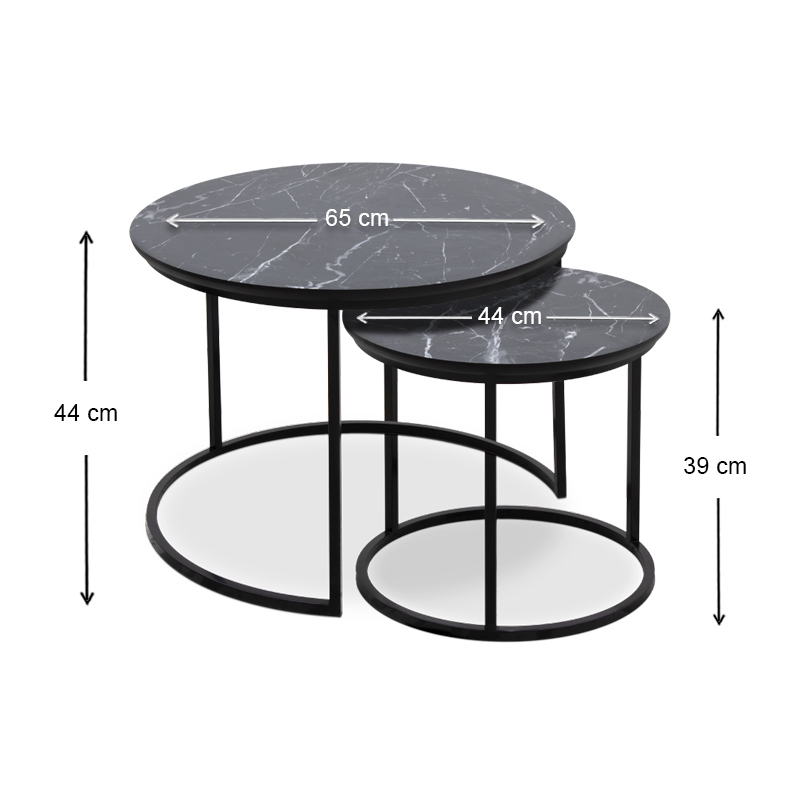 Τραπεζάκια σαλονιού Gary Megapap Mdf – μεταλλικό χρώμα μαύρο εφέ μαρμάρου 65x65x44εκ.