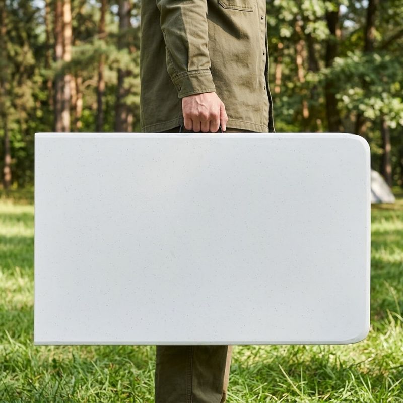 - Επιφάνεια κατασκευασμένη από πολυαιθυλένιο υψηλής πυκνότητας (HDPE), ιδιαίτερα ανθεκτικό υλικό που προσφέρει μεγάλη αντοχή στη φθορά, την υγρασία και την καθημερινή χρήση.