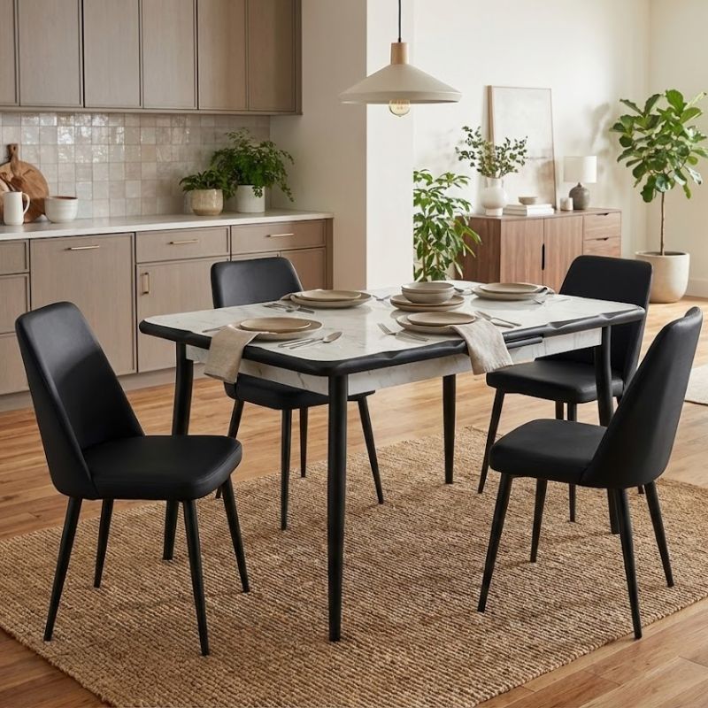 Τραπέζι Karen Megapap επεκτεινόμενο χρώμα λευκό εφέ μαρμάρου – μαύρο 130/160x80x75εκ.
