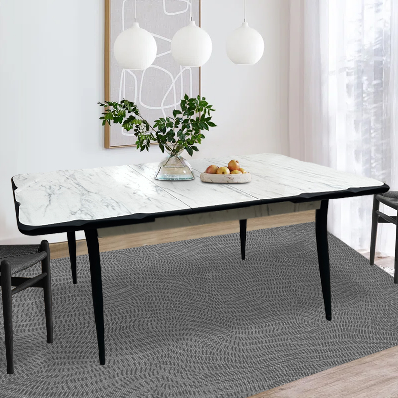 Τραπέζι Karen Megapap επεκτεινόμενο χρώμα λευκό εφέ μαρμάρου – μαύρο 130/160x80x75εκ.