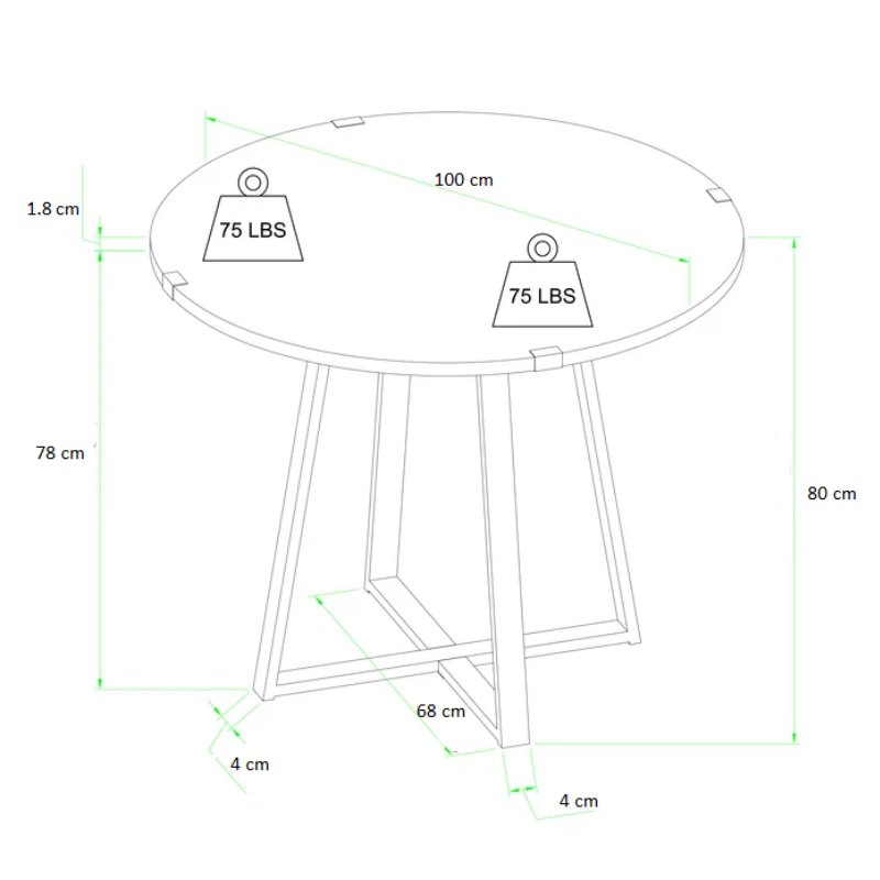 - Διαστάσεις: Μήκος 100 x Βάθος 100 x Ύψος 78 εκ.