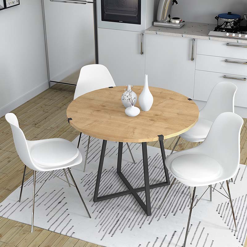 Τραπέζι Rubes Megapap μεταλλικό – μελαμίνης χρώμα sonoma – ανθρακί 100x100x78εκ.