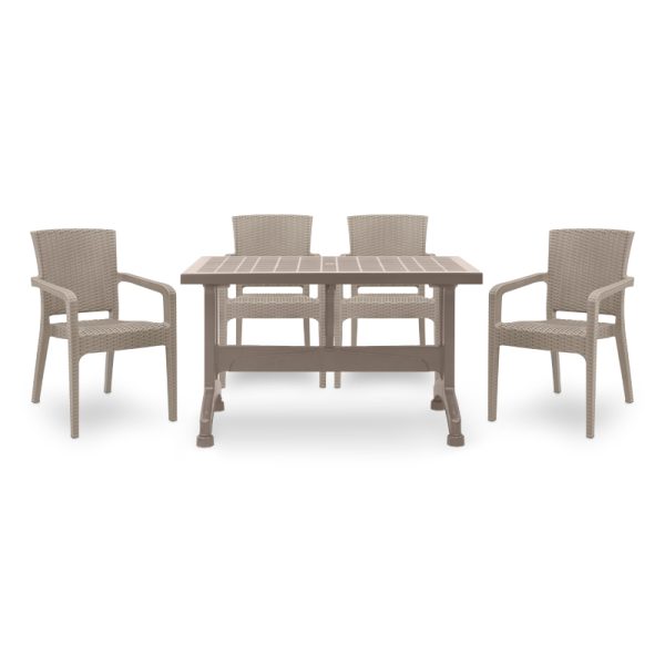 Σετ τραπεζαρία κήπου Callan Megapap 5τμχ πολυπροπυλενίου τραπέζι 140×70 – πολυθρόνα recycled χρώμα cappuccino S_GP046-0003,2+GP046-0001,3×4