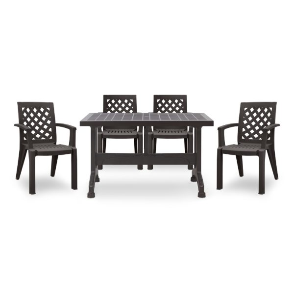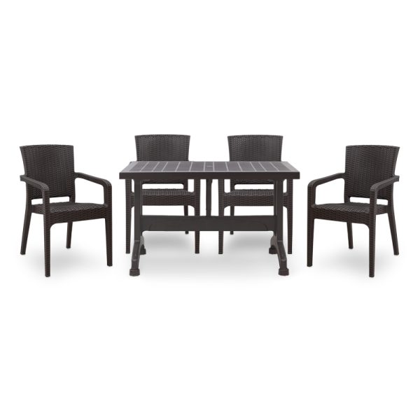 Σετ τραπεζαρία κήπου Callan Megapap 5τμχ πολυπροπυλενίου τραπέζι 140×70 – πολυθρόνα χρώμα καφέ S_GP046-0003,1+GP046-0004,3×4