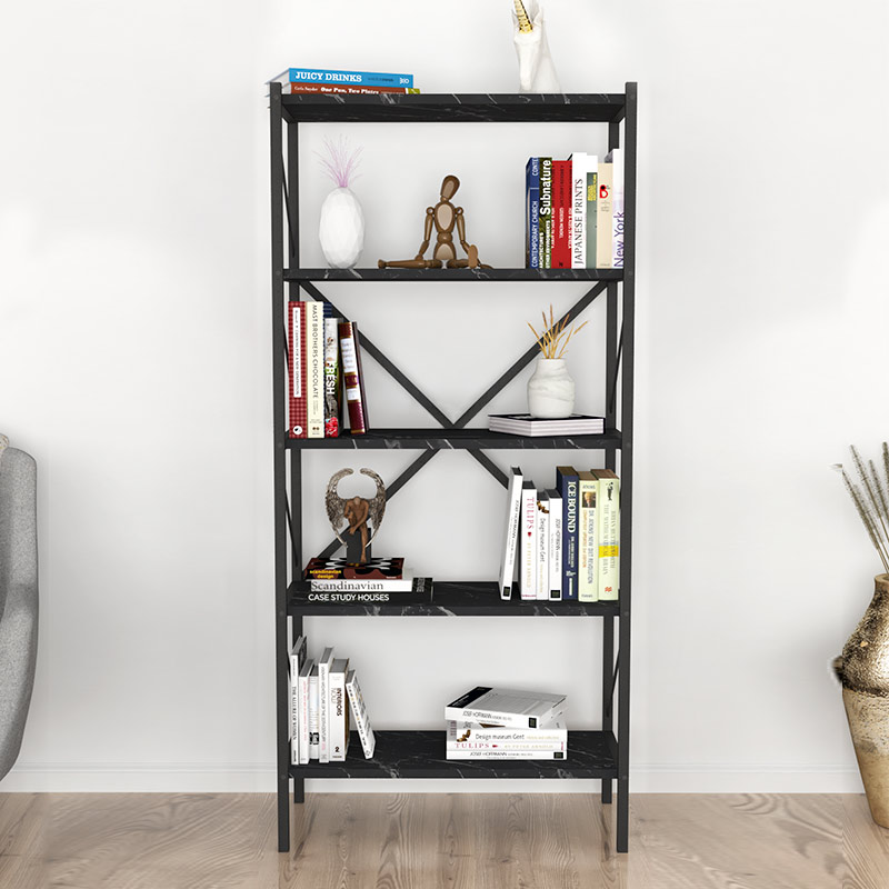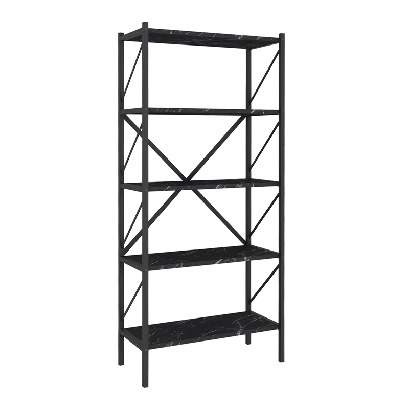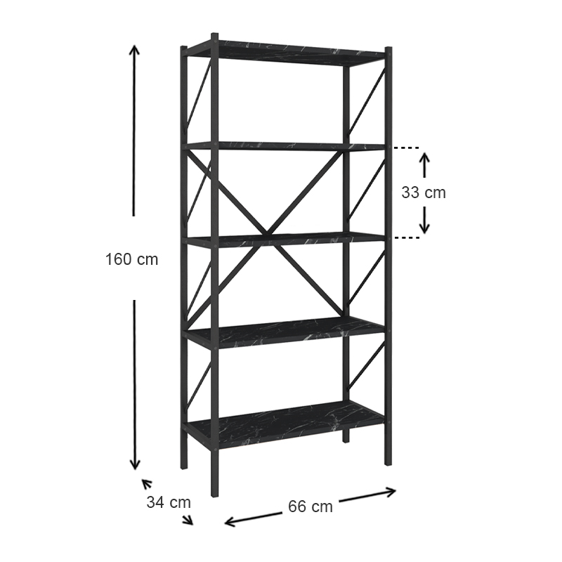 Βιβλιοθήκη Jocasta Megapap μεταλλική – μελαμίνης χρώμα μαύρο εφέ μαρμάρου 66x34x160εκ.