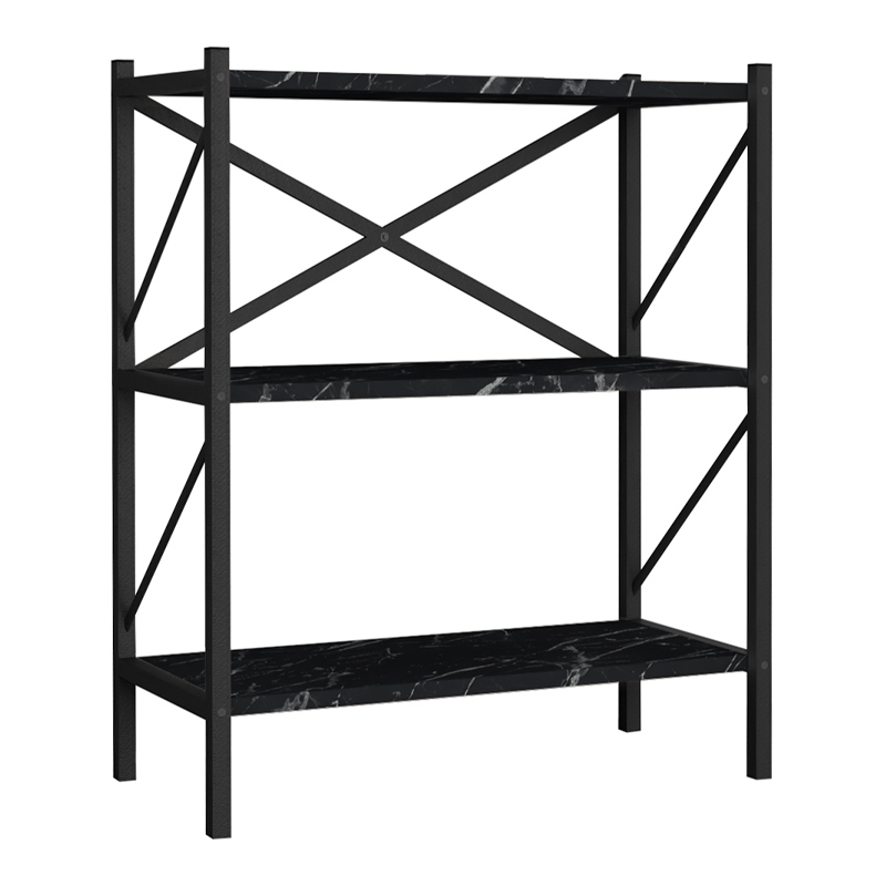 Βιβλιοθήκη Jocasta Megapap μεταλλική – μελαμίνης χρώμα μαύρο εφέ μαρμάρου 66x34x85εκ.