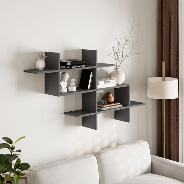 Βιβλιοθήκη μελαμίνης Manco Megapap χρώμα ανθρακί 122×25,5×188εκ.