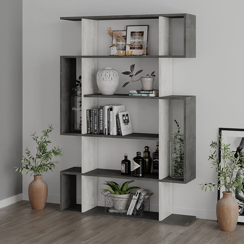 Βιβλιοθήκη μελαμίνης Mito Megapap χρώμα λευκό αντικέ – γκρι ρετρό 108x25x161εκ.