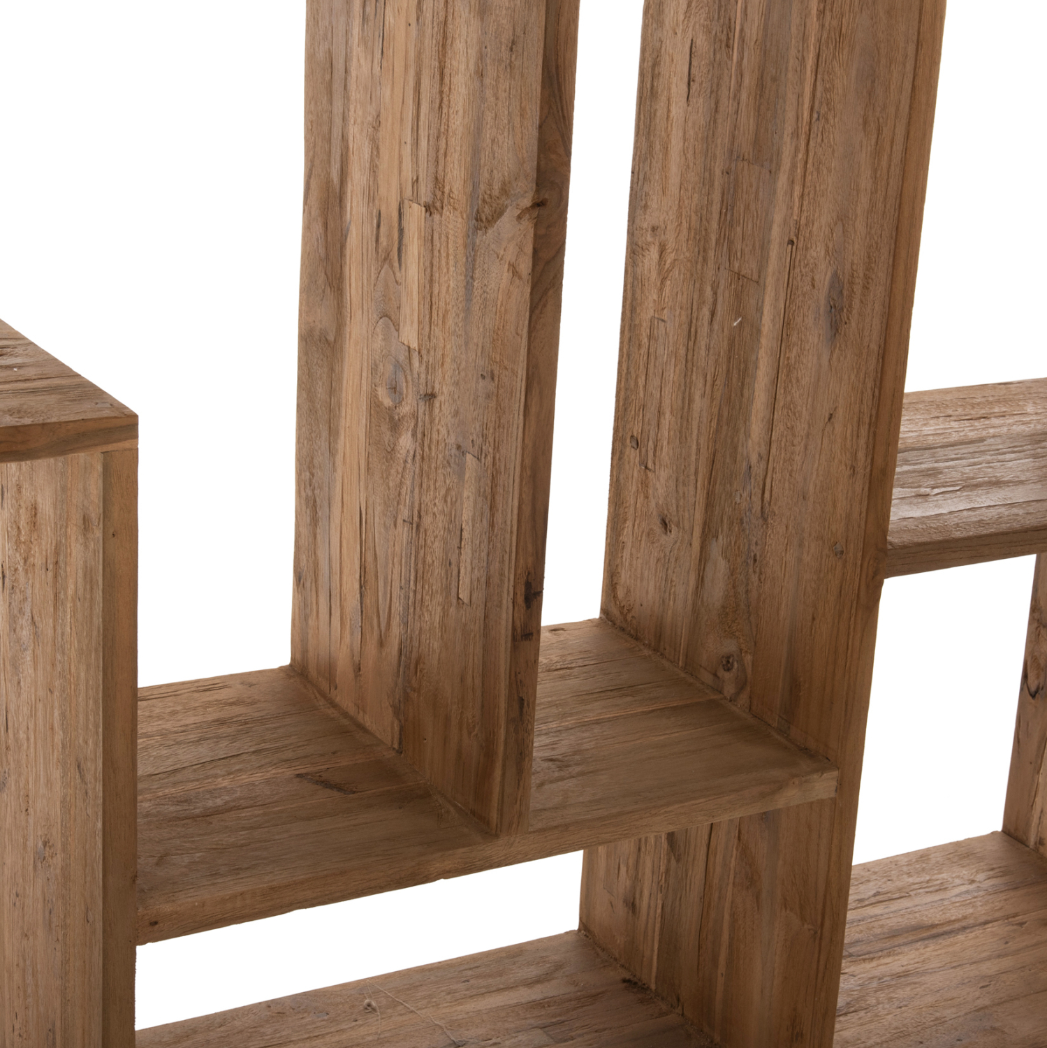 Η βιβλιοθήκη είναι από ανακυκλωμένο ξύλο ΤΕΑΚ. Το ξύλο ΤΕΑΚ είναι ο πιο δημοφιλής τύπος σκληρού ξύλου. Είναι χρώματος κίτρινο έως σκούρο καφέ, εξαιρετικά βαρύ, υψηλής αντοχής, ανθεκτικό στις καιρικές συνθήκες, ανθεκτικό στο σκέβρωμα και δεν αποσυντίθεται. Συχνά, τα νερά του ξύλου του είναι έντονα και σε ευθεία. Χρησιμοποιείται για πληθώρα κατασκευών εσωτερικού και εξωτερικού χώρου.