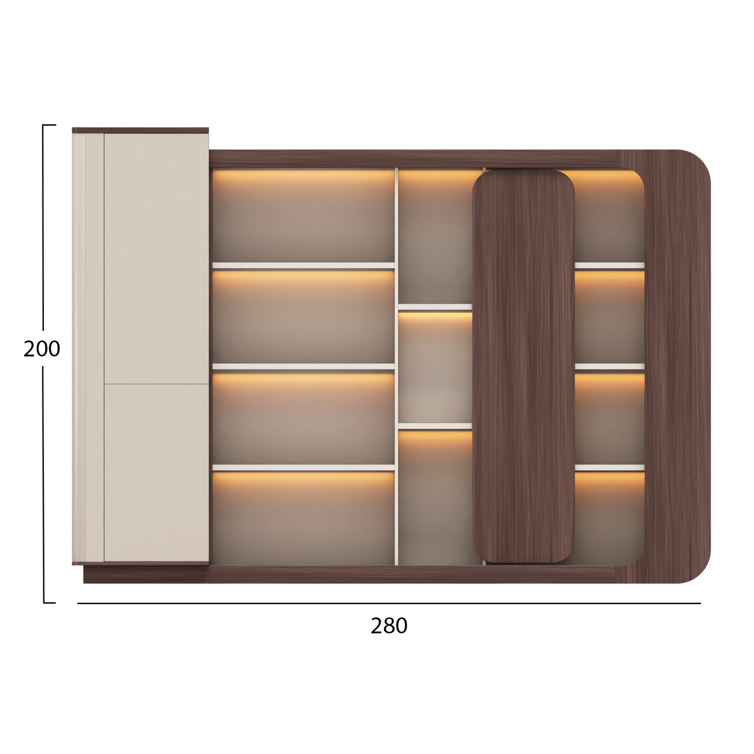 ΒΙΒΛΙΟΘΗΚΗ ΣΕΙΡΑ PRESIDENT HM2148 ΜΕΛΑΜΙΝΗ ΜΠΕΖ & ΚΑΡΥΔΙ–LED ΦΩΤΙΣΜΟΣ 280x40x200Υεκ