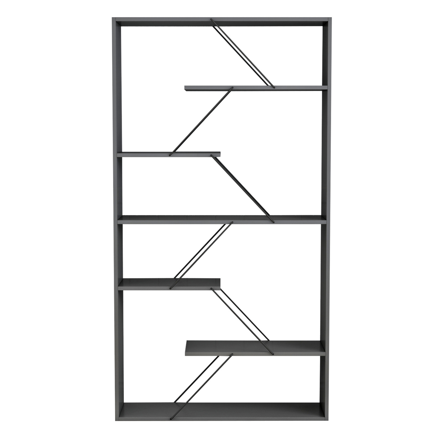 Η βιβλιοθήκη TARS είναι μια μοντέρνα πρόταση για το γραφείο σας ή οπουδήποτε αλλού θέλετε να τοποθετήσετε μια βιβλιοθήκη. Διαθέτει 5 ράφια τοποθέτησης που δεν πιάνουν όλο το μήκος της βιβλιοθήκης αλλά στηρίζονται μεταξύ τους με μεταλλικές ράβδους σύν ένα ράφι που είναι η κάτω επιφάνεια της βιβλιοθήκης, ενώ οι διαστάσεις της την καθιστούν βολική για πολλούς χώρους. Το χρώμα της είναι ΓΚΡΙ με ΜΑΥΡΕΣ ράβδους.