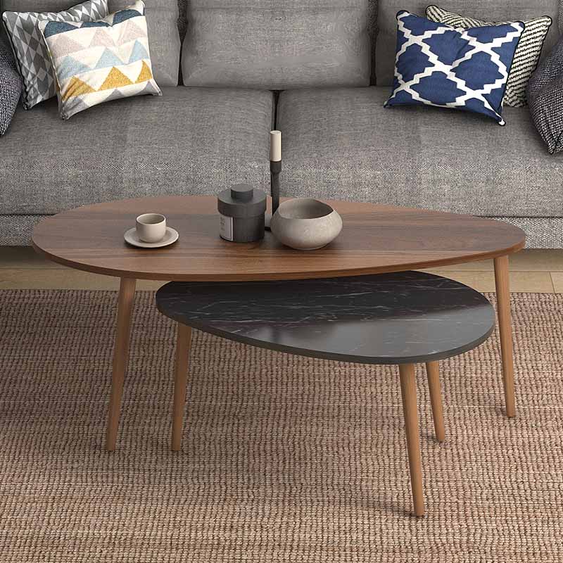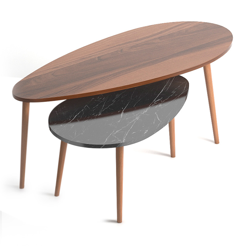 Βοηθητικά τραπεζάκια Elips Megapap από μελαμίνη χρώμα καρυδί – μαύρο εφέ μαρμάρου 116x46x46εκ.