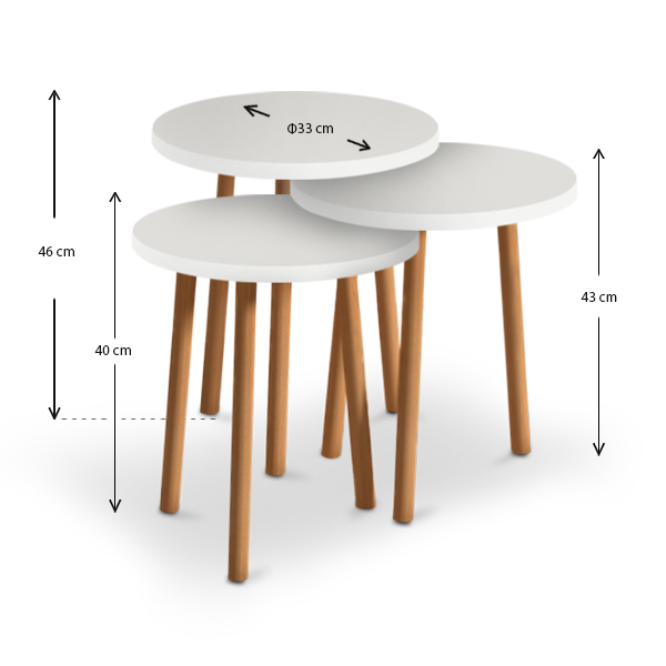 • Διαστάσεις μεσαίου τραπεζιού: Μήκος 33 x Βάθος 33 x Ύψος 43 εκ.