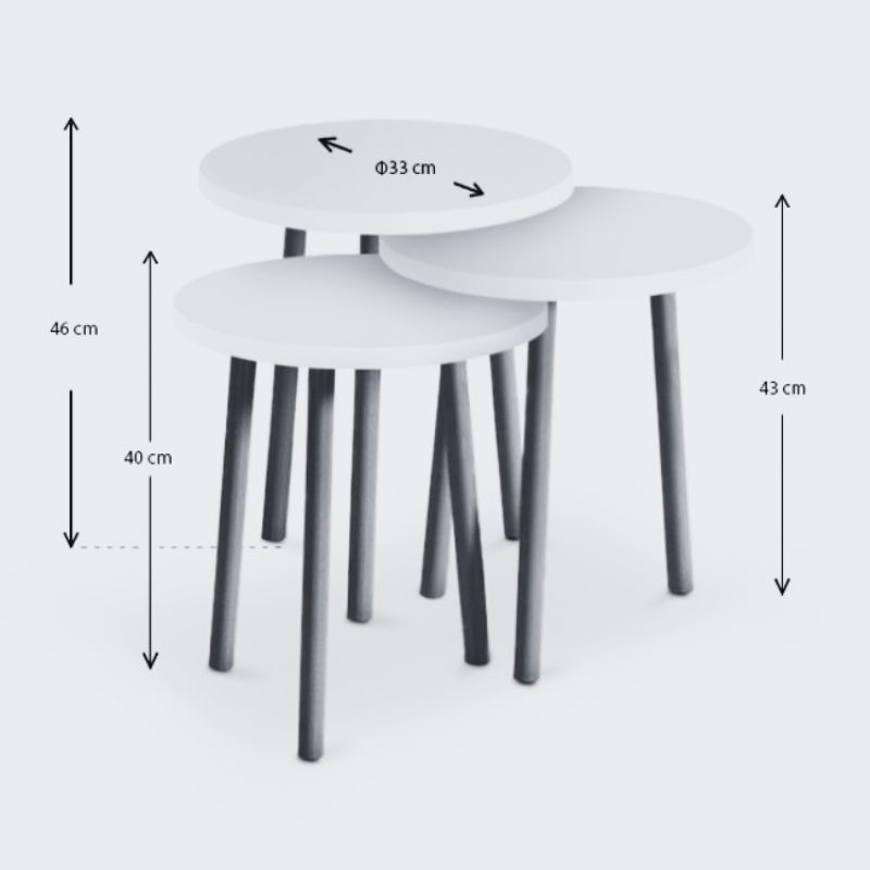 - Διαστάσεις μεσαίου τραπεζιού: Μήκος 33 x Βάθος 33 x Ύψος 43 εκ.