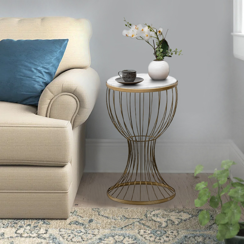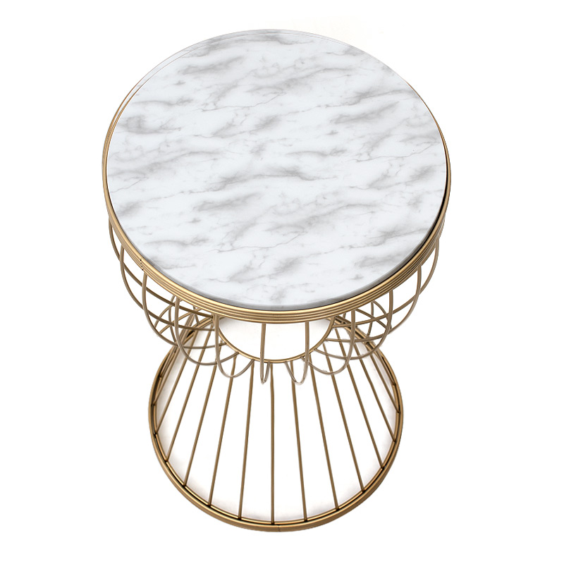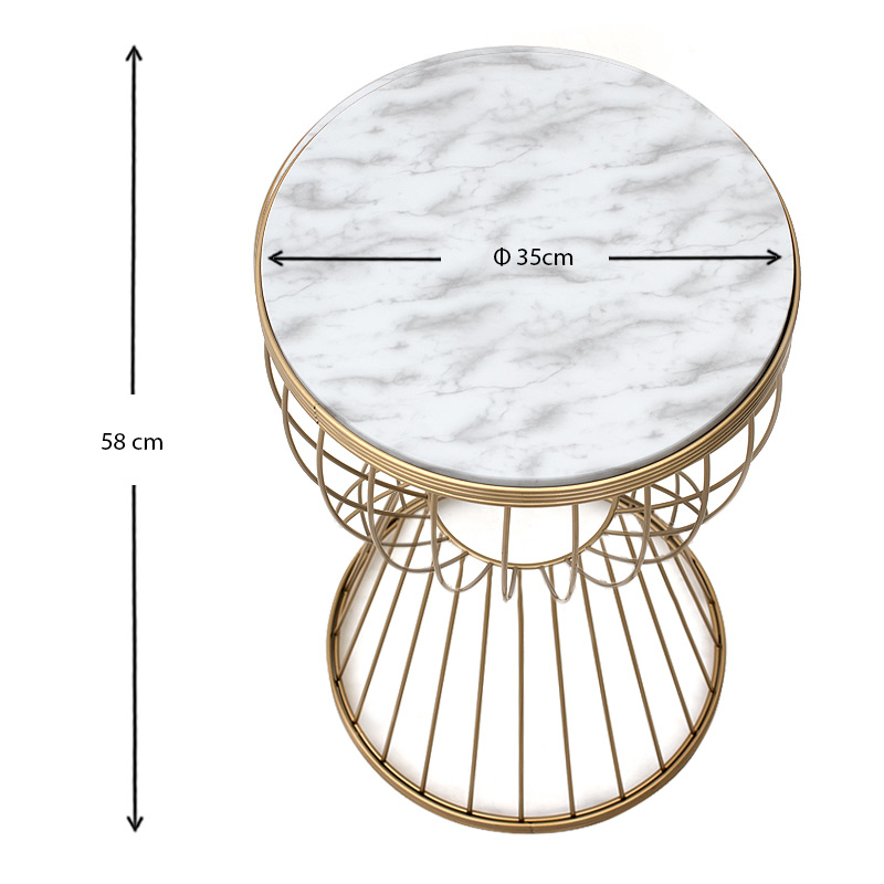 Βοηθητικό τραπεζάκι Aldora Megapap μεταλλικό – Mdf χρώμα χρυσό – λευκό εφέ μαρμάρου 35x35x58εκ.