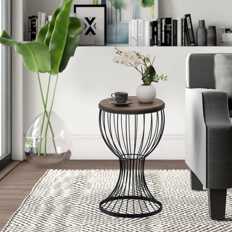 Βοηθητικό τραπεζάκι Aldora Megapap μεταλλικό – Mdf χρώμα μαύρο – καρυδί 35x35x58εκ.