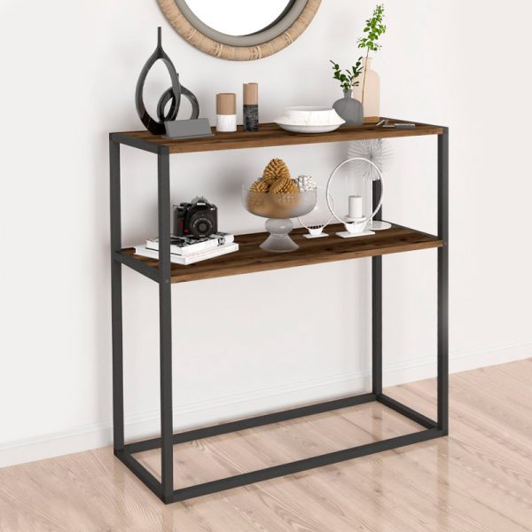 Κονσόλα Castel Megapap μεταλλική - μελαμίνης χρώμα μαύρο - καπνιστή καρυδιά 90x33,5x90εκ. €49.00 Original price was: €49.00.€39.90Η τρέχουσα τιμή είναι: €39.90.