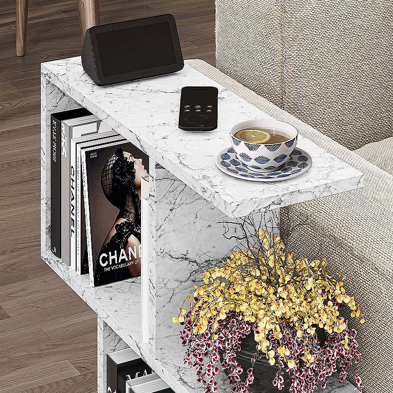 Βοηθητικό τραπεζάκι Homemania Megapap χρώμα λευκό εφέ μαρμάρου 60x20x60εκ.