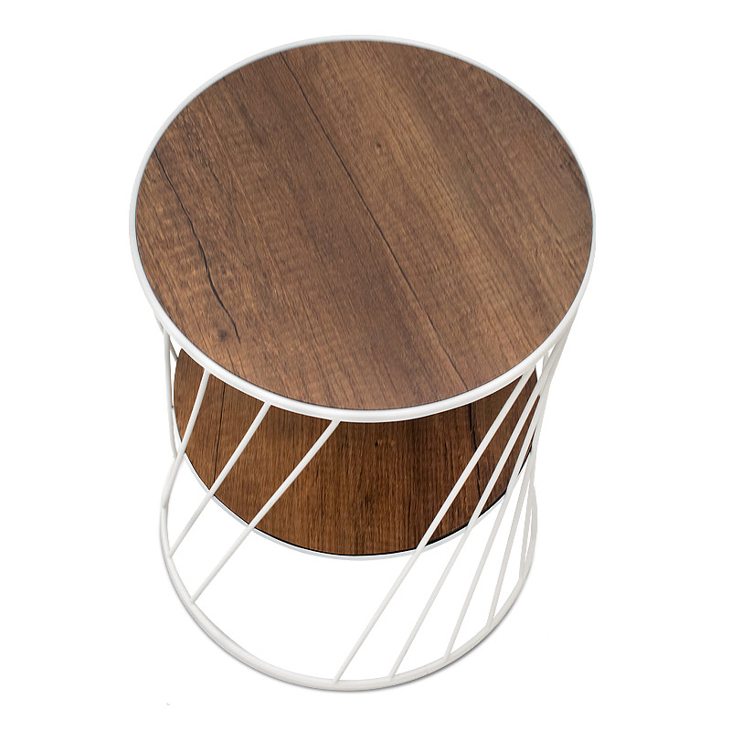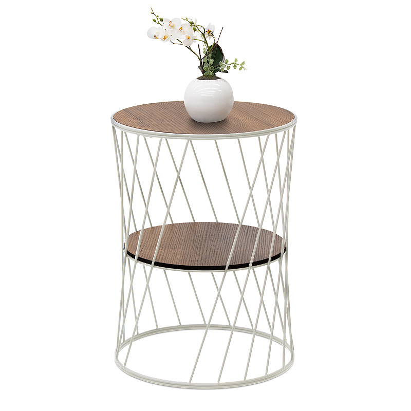 Βοηθητικό τραπεζάκι Jaspin Megapap μεταλλικό – Mdf χρώμα λευκό – καρυδί 32x32x44εκ.